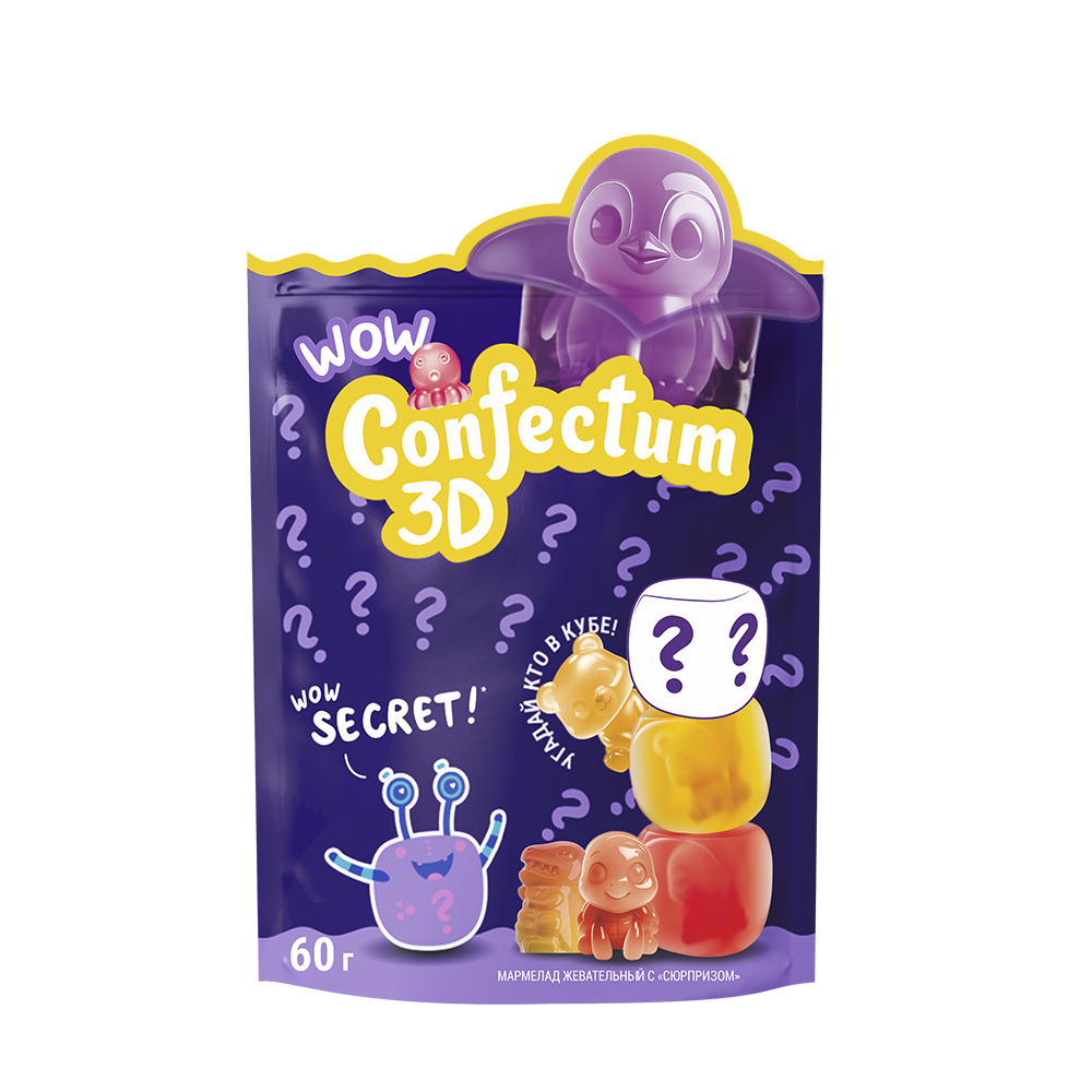 Confectum Funny 3D — это не просто мармелад, это настоящее сладкое приключение! Яркие кубики с мягкой жевательной текстурой и объемными фигурками забавных животных внутри превращают привычное лакомство в игру, которая радует и взрослых, и детей. Каждый кусочек — это маленький мир, наполненный вкусом, цветом и хорошим настроением.